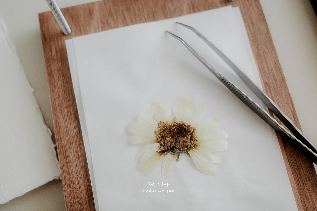 이 꽃은 일주일이 지났는데도 덜 말라서 종이를 갈고 다시 압판에 넣어두었다. 예쁘게 말라라♥︎